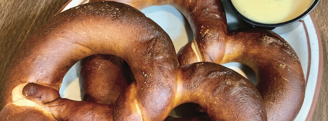 - A super-sized (10 oz) Bavarian style soft pretzel served with green chile nacho cheese and honey dijon